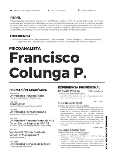 Soy Francisco Colunga, Maestro en psicoterapia Psicoanalítica por Centro Eleia y Maestro en Desarrollo Humano con especialidad en Terapia Centrada en la Persona por la Universidad Iberoamericana.